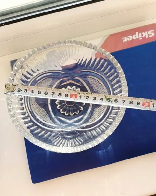 Очень красивая небольшая Сахарница, салатница, конфетница, хрусталь, еще с советских времен. Верхний край волнообразный, высота от 6,5 до 7,5см. Размеры присутствуют на фото. Отдачу за символично минимальную цену, просто, чтобы не пилось в серванте.