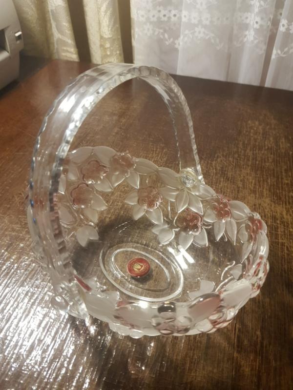 немецкая хрустальная конфетница. размер 18×14 см, высота 8 см. ручка снимается.