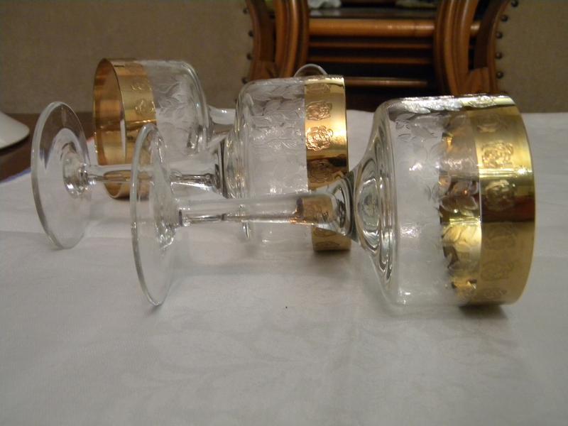 Бокалы мартиницы - 3 шт хрусталь резьба позолота богемия чехословакия №263