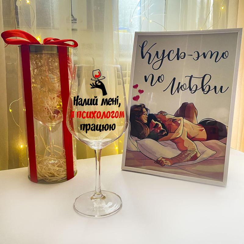 Бокал для вина с надписью "налей мне, я психологом работаю" (объем 450 мл)