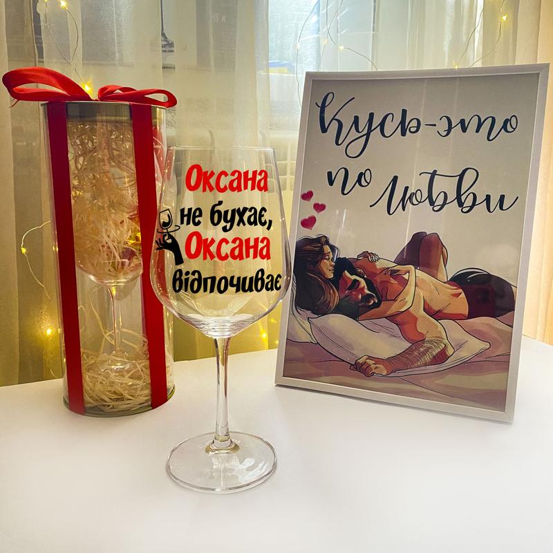 Бокал для вина с надписью "оксана не бухает, оксана отдыхает" (объем 450 мл)
