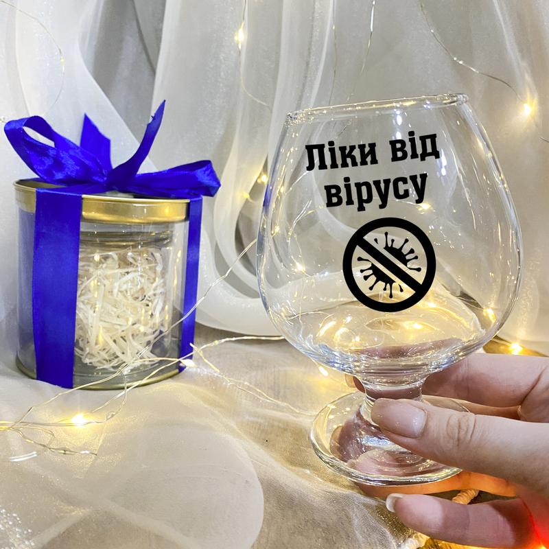 Бокал для коньяка "лекарство от вируса" с подарочной упаковкой