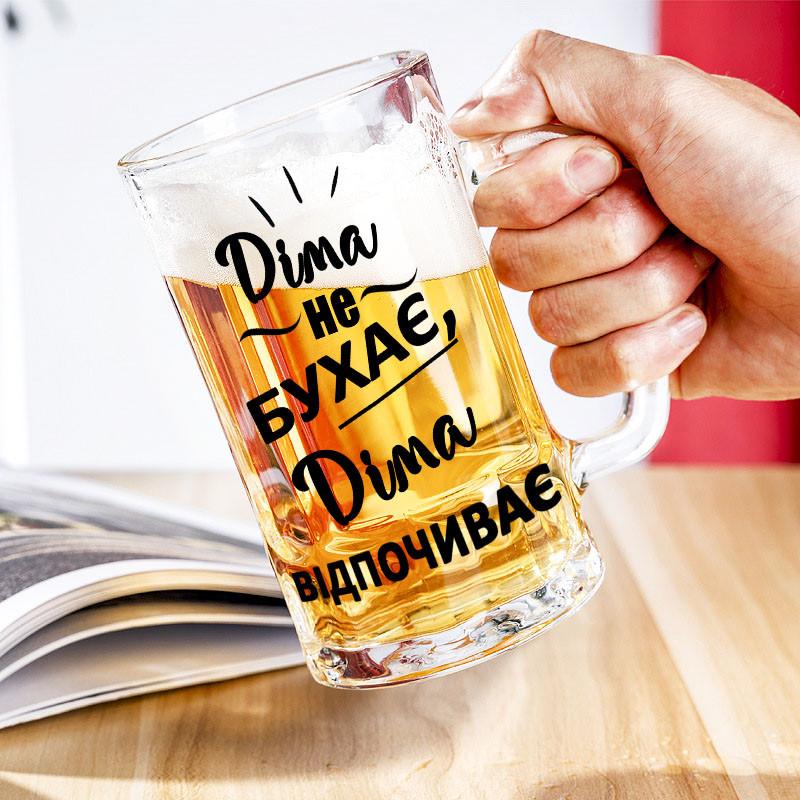 Пивной бокал с надписью "дима не бухает, дима отдыхает" - имя любое