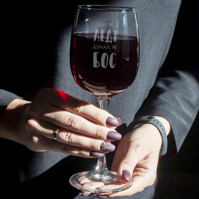 Бокал для вина "дій, як леді. думай, як бос" в крафтовой коробке