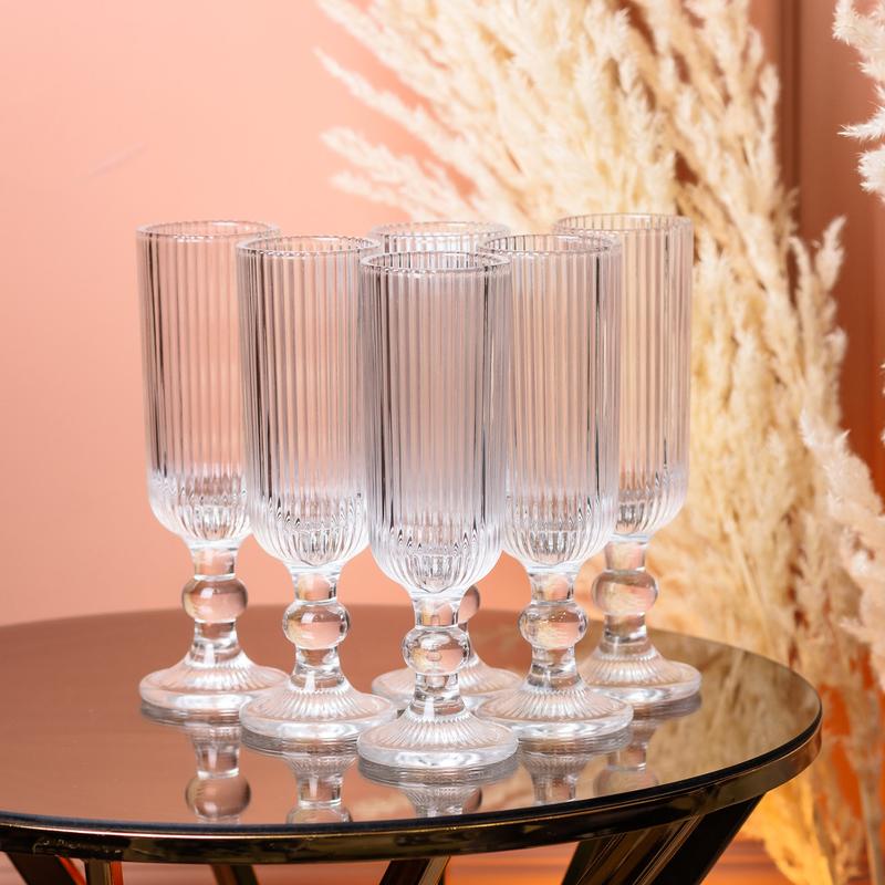 Бокалы под шампанское высокие рифленые из толстого стекла 6 штук