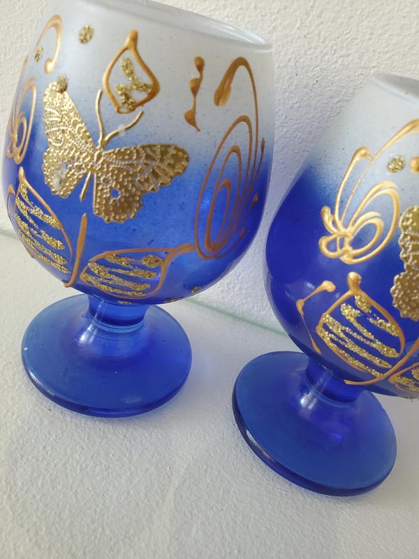 Фужери, 2 шт. Цвет как на фото. Выглядят симпатично. Высота см.фото 7. Объем 250 мл. Отсылаю УП, НП