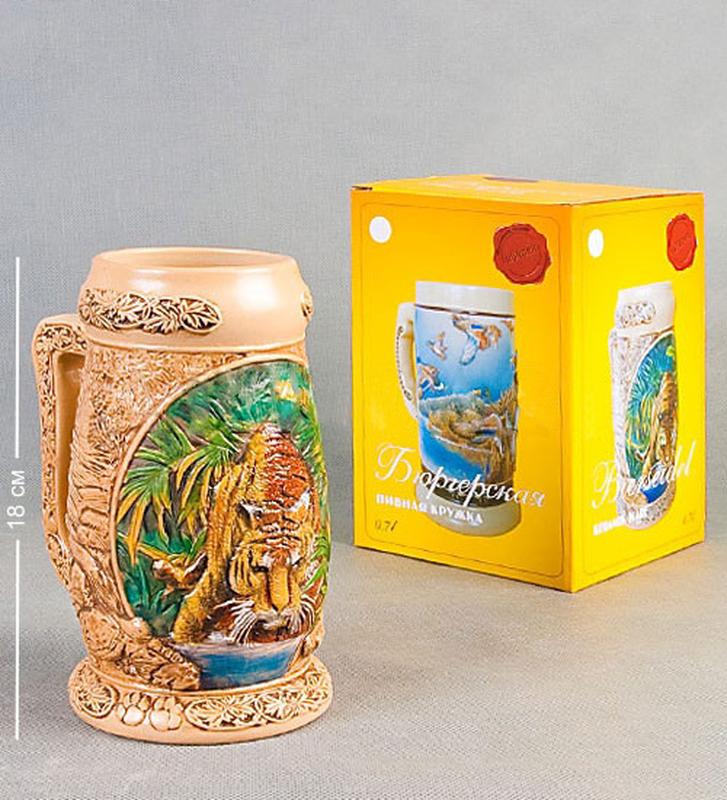 Пивная кружка Бюргерская Тигр 720 мл 110536 материал-керамика Вместительные, красивые, крепкие, с удобной ручкой – именно такие традиционные пивные кружки из керамики испокон веков считаются универсальными мужскими подарками. Наверно, так сложилось потому, что редкий представитель сильного пола не является поклонником янтарного пенного напитка.