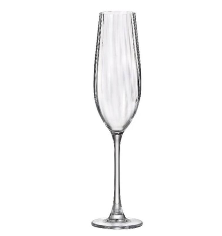 Набір келихів для шампанського Bohemia Columba Optic 260мл 2шт Количество предметов: 2 Объем : 260 мл Материал: прозрачное богемское стекло Декор: нет Упаковка: подарочная Использование в посудомоечной машине: возможно при низких температурах Производитель: Bohemia, Чехия