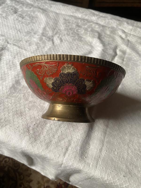 Фруктовниця з латуні, ручна робота. Заводська наліпка вказує на те що не використовувалась. Ручна робота з Індії, антикваріат з оригінальним розписом