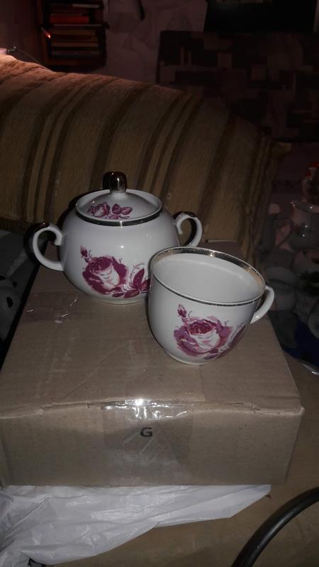 Сахарница и чашка ( есть скол ) с розой фарфор вместе за 60 высота 12см.и 7 см. барановка