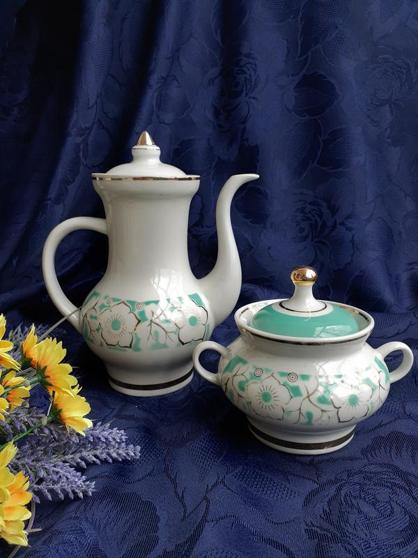 Довбыш! 🌸🌿 1970-е! яблоневый цвет сервиз кофейник и сахарница фарфор деколь позолота сов...