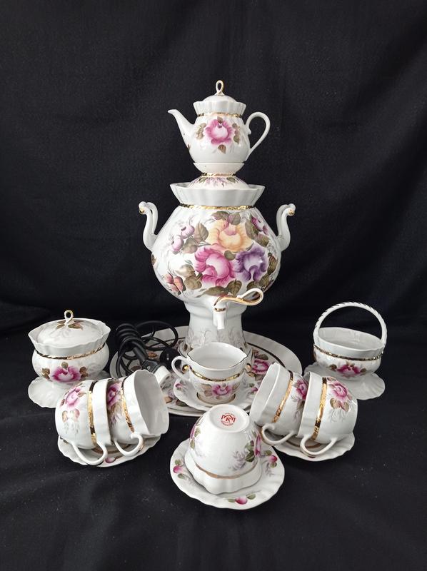 Сервиз чайный с самоваром "букет роз" коростенский фарфор состоит из 17 предметов на 6 пе...