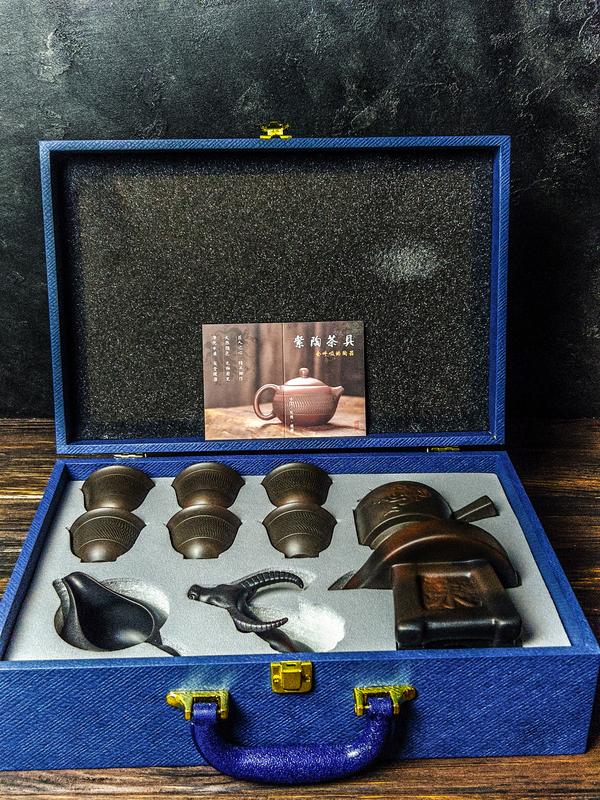 До нас приїхав вражаючий набір із фіолетової глини. Як відомо, ця глина має корисні властивості, так як насичена мінералами. Набір на 6 персон. Автоматичний чайник із спеціальною підставкою точно здивує Чай наливається лише одним обертом чайничка Родзинка цього набору не лише в автоматичному чайничку, але і в незвичній фігурці-підставці для піал/чайному вихованцю. Завдяки цьому йому можна досить незвично подавати піалу гостю. Деревʼяний кейс у вигляді валізи із захистом для кожної деталі набору, дозволить з легкістю транспортувати набір. Хоча в такому кейсі - це буде прекрасний та оригінальний подарунок