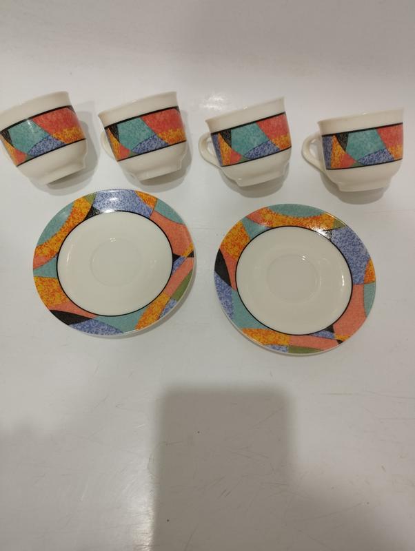 Срочно ! набор из 4 винтажных стеклянных чашек для и 2 блюдец от arcopal francе.