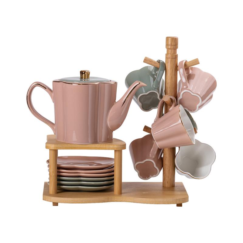 Чайный сервиз на 6 персон с бамбуковой подставкой
