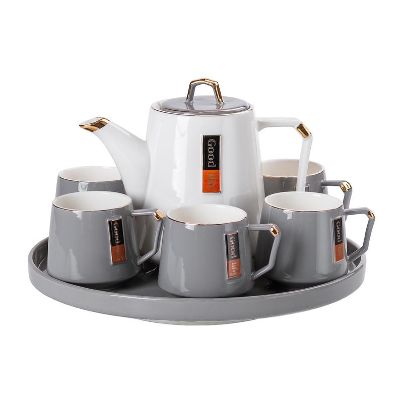 Чайный сервізна 6 персон с керамической подставкой, серый.