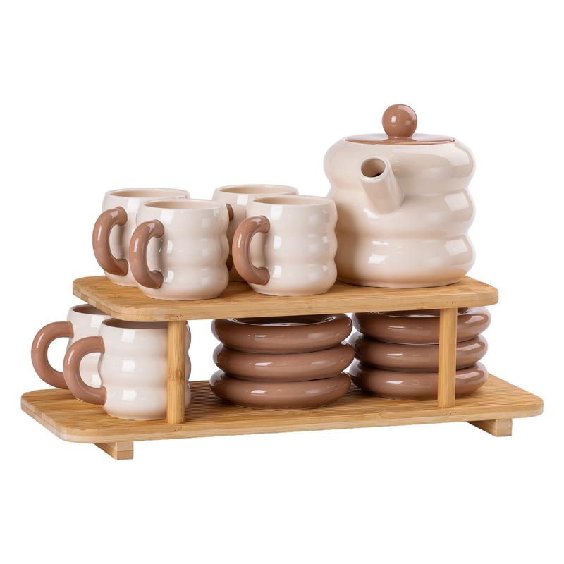 Чайный сервиз на 6 персон с 2-ярусной бамбуковой подставкой