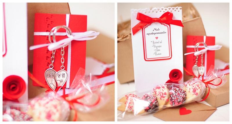 Подарунковий набір Чай приворотний характеристика: - - Чай зелений із травами (м'ята, розмарин, чебрець) — 100 г. - - Печиво з передбаченнями — 5 шт. - - Брелки «полівинки сердець» — 2 шт. - - Стилізована подарункове паковання. Термін виготовлення 1-2 днів