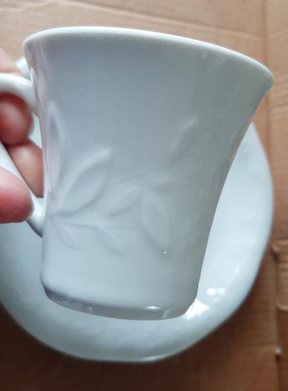 Кофейный набор из 6 кофейных горят и 6 блюдец. Фарфор белый. Производство Турция. Качественный. Чисто белый с оливковым орнаментом. Неиспользованный. Целый. Без точек и т.д./без браков.