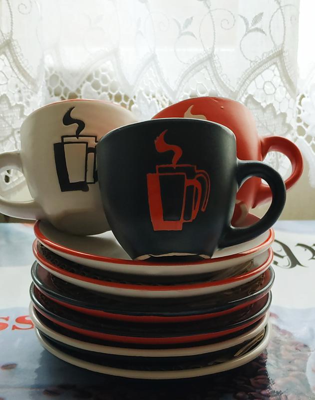 Новий кавовий набір на 6 осіб. Об'єм чашки 80 мл. Діаметр блюдця 11,5 см.
