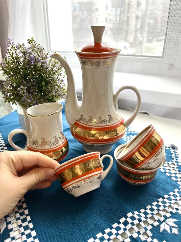Фарфоровый сервиз (чайник, молочник и 3 чашечка) Бориславский завод, сервантное хранение