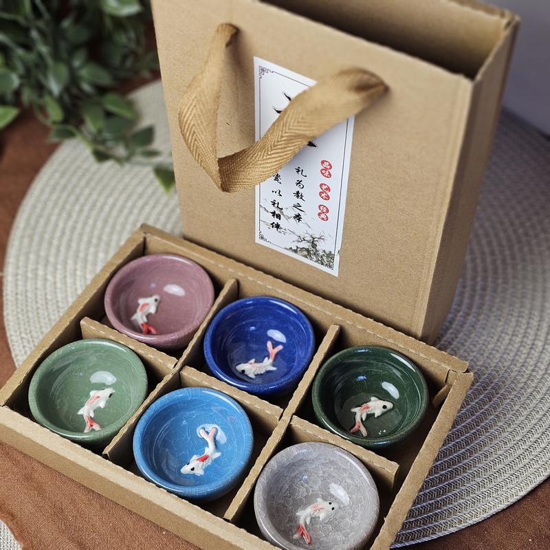 В наборе могут быть пиалы других цветов! Яркий набор пиал станет отличным дополнением к чайной церемонии. Включает шесть разноцветных пиал объемом 50 мл, с волшебной глазурью «битый лед» и фигуркой рыбки внутри. Такой набор обязательно привлечет внимание гостей. Изысканный дизайн и качественные материалы делают его превосходным выбором для подарка или стильным дополнением к интерьеру. Посуда изготовлена согласно традиционной китайской технике «битый лед», которая создает красивую сеть трещин на поверхности. Глазурь трескается при обжиге, образуя уникальный узор. Рыба, изображенная внутри пиал, ассоциируется с богатством и удачей в китайской культуре. Это отличный выбор для любителей красивой посуды и традиционного чаепития. Заказывайте удобным для вас способом: Укрпочтой, Новой Почтой, Meest. График работы: понедельник-пятница 10:00-17:00. Сб-Вс - выходные. Заказы, оформленные до 12:00, отправляем в тот же день. После 12:00 - на следующий рабочий день Просмотрите другие наши объявления. У нас большой ассортимент различного чая, посуды и других принадлежностей для чайной церемонии. Для военных - дополнительные вкусные и приятные подарки к каждому заказу! Пишите мне, я проконсультирую и помогу выбрать именно то, что вам нужно! Мы открыты для сотрудничества с дропшиппингом и крупным оптом.