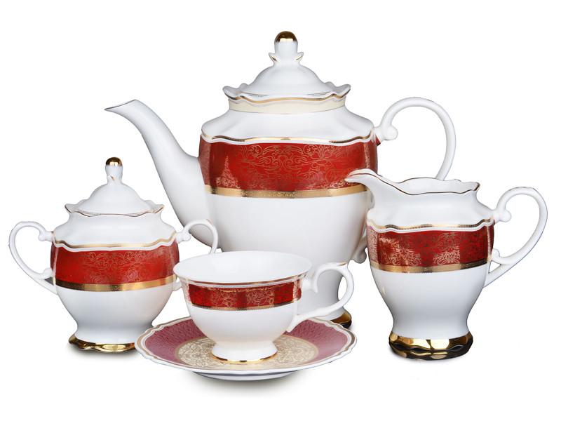 Чайный фарфоровый сервиз Lefard Элит 15 предметов,чашка 220 мл 1586-320 Набор состоит из 6 чашек 200 мл и 6 блюдец 14 см, чайник 1200 мл, сахарница 250 мл, молочник 250 мл. материал- фарфор; Объем кружки: 200 мл; Упакован в подарочную коробку.