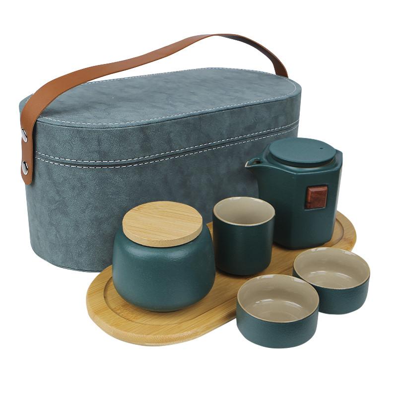 Дорожный набор 45521 для чайной церемонии из 7 предметов керамический dark green
