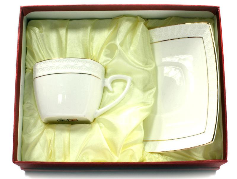 Набор для чая interos из 2 предметов квадратная чашка с блюдцем 240 мл в подарочной упаков...