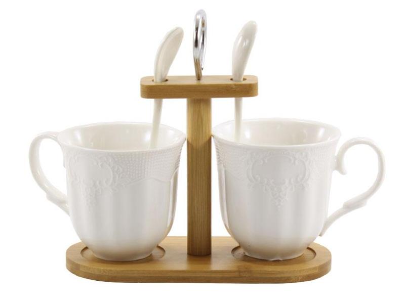 Набор посуды interos из 2 предметов фарфоровых чашек с ложками на деревянной стойке 300 мл...