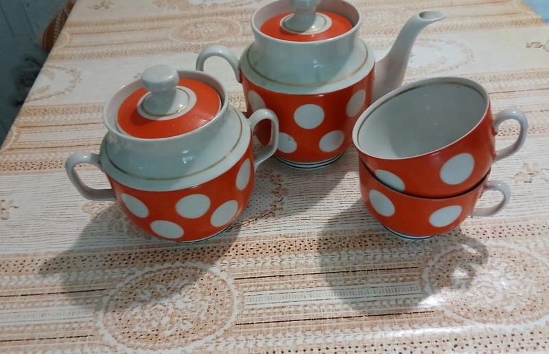 Неполный чайный сервиз Довбыш горох. Чашки объем 200 мл. Сахарница 500 мл. Заварник 650 мл. Возможна продажа по отдельности.
