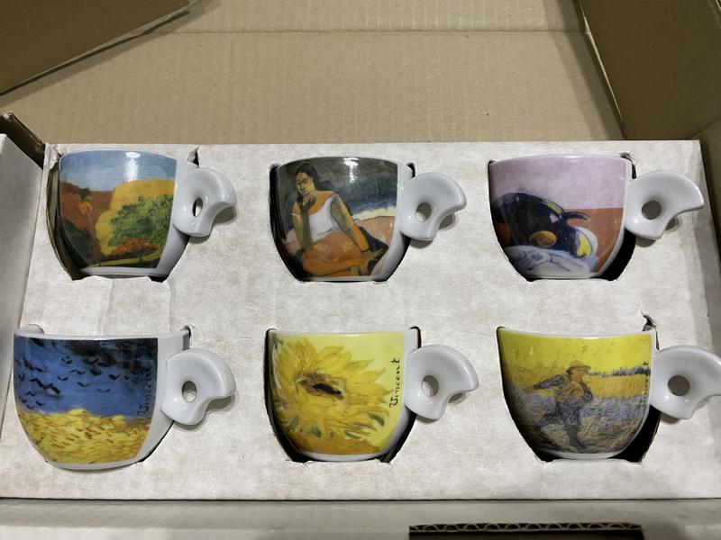 Кофейный набор из 6 чашек и блюдец из фарфора THUN BOHEMIA из Чехии, коллекция Винсента Ван Гога Thun Karlovarský porcelán (Карлсбадский фарфор Thun) — крупнейший чешский производитель потребительского и декоративного фарфора. Старейшая фабрика была основана ещё в 1794 году. Этот уникальный сервиз состоит из шести чашек (с белыми блюдцами) с шестью знаменитыми картинами Винсента Ван Гога, выполненными в ярких жёлтых и синих тонах. Чашки 2” x 2,5” / блюдца 4”8 в диаметре. Надежно упакованы в оригинальную подарочную коробку производителя. ПРОСТО ЧУДЕСНЫЙ НАБОР ДЛЯ КОЛЛЕКЦИОНЕРА ИЗЯЩНОГО ИСКУССТВА И ЦЕНА ИЗЫСКАННОГО КОФЕ. ХУДОЖНИК: THUN ОПИСАНИЕ: 6 ЧАШЕК ДЛЯ ЭСПРЕССО С БЛЮДЦАМИ С ОФИЦИАЛЬНОЙ МАРКОЙ КОРОЛЕВСКОГО ИЗГОТОВИТЕЛЯ THUN И НОМЕРОМ 1. ПЕРВАЯ В СЕРИИ, КОТОРАЯ БЫЛА ВЫПУЩЕНА ОЧЕНЬ НИЗКИМ ТИРОМ С ОРИГИНАЛЬНОЙ КОРОБКОЙ. ПРЕКРАСНАЯ ВОЗМОЖНОСТЬ ДЛЯ СЕРЬЕЗНОГО КОЛЛЕКЦИОНЕРА ЧАШЕК ПРИОБРЕСТИ ОЧЕНЬ РЕДКИЙ ПРЕДМЕТ.