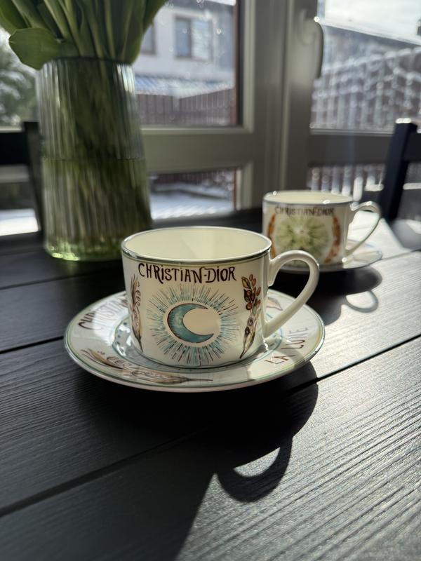 Колекційний набір Christian Dior L'Étoile (2 чашки + блюдця) Ексклюзивна серія посуду, що поєднує високу моду та вишуканий домашній затишок. Особливості набору: Дизайн: Авторський принт L'Étoile (Зірка) з фірмовим написом Christian Dior. Колірна гама: Ніжні відтінки зеленого, блакитного та золотистого на білосніжній порцеляні. Комплект: 2 кавові/чайні пари у преміальній білій коробці з захисним наповненням. Подарункова цінність: Виглядає надзвичайно дорого та статусно. Найкращий варіант для подарунка людині, у якої "є все". 📦 Доставка: Нова Пошта / Самовивіз. 💎 Стан: Новий, у фірмовому пакуванні.