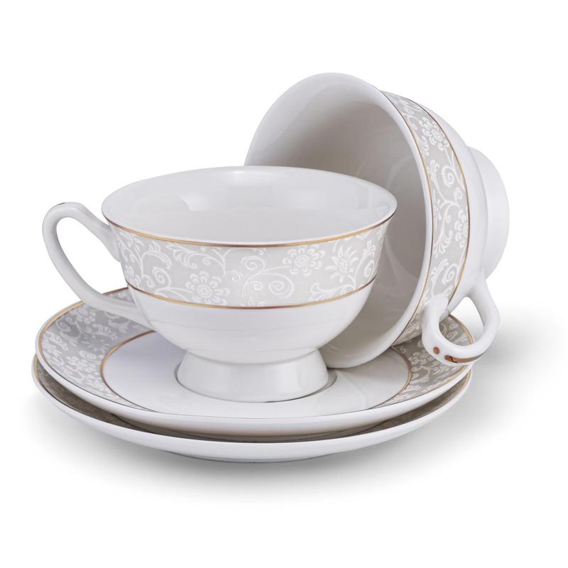 Набор чайных пар Набор: чашка с блюдцем (2 шт) Материал: фарфор Цвет: белый с декором Объем чашек: 200 мл Нанесение рисунка в технике декора.