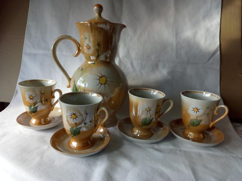 Новый сервиз, ручная роспись, Набор для молока, чашка 180мл, кучин 1500мл. Производство: Огородничный фарфоровый завод. Не пользовались, хранится упакован в родной коробке.