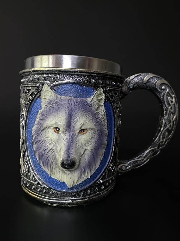 Матеріал гуртки: Нержавіюча сталь Матеріал зображення: Смола Розмір: 11,5 см х 15 см х 10,5 см Ємність: 301-400 мл Вага: 641 грам