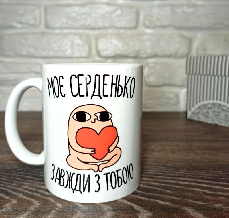 Кружка "Моє серденько завжди з тобою". Чашка на день влюбленных. отличный подарок для близких и друзей - объем чашки 330 мл. - в наличии чашки белые, цветные, хамелеон и золото. - любое изображение или фото с обратной стороны можно добавить по желанию (макет можно разработать индивидуально), цена не изменится. - материал - керамика. - сублимационная печать (изображение не стирается, устойчиво к мытью 100%) УПАКОВКА: Отправляем чашки надежно упакованы. В наличии есть подарочные упаковки для чашек (цена 20 грн). Примеры коробочек у нас на странице. После оформления заказа с Вами свяжется наш менеджер и обсудит все детали заказа.