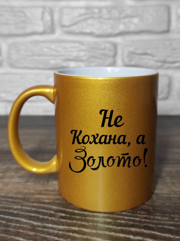 Кружка "НЕ КОХАНА, А ЗОЛОТО! Чашка КОХАНІЙ отличный подарок для близких и друзей - объем чашки 330 мл. - в наличии чашки белые, цветные, хамелеон и золото. - любое изображение или фото с обратной стороны можно добавить по желанию (макет можно разработать индивидуально), цена не изменится. - материал - керамика. - сублимационная печать (изображение не стирается, устойчиво к мытью 100%) УПАКОВКА: Отправляем чашки надежно упакованы. В наличии есть подарочные упаковки для чашек (цена 20 грн). Примеры коробочек у нас на странице. После оформления заказа с Вами свяжется наш менеджер и обсудит все детали заказа.