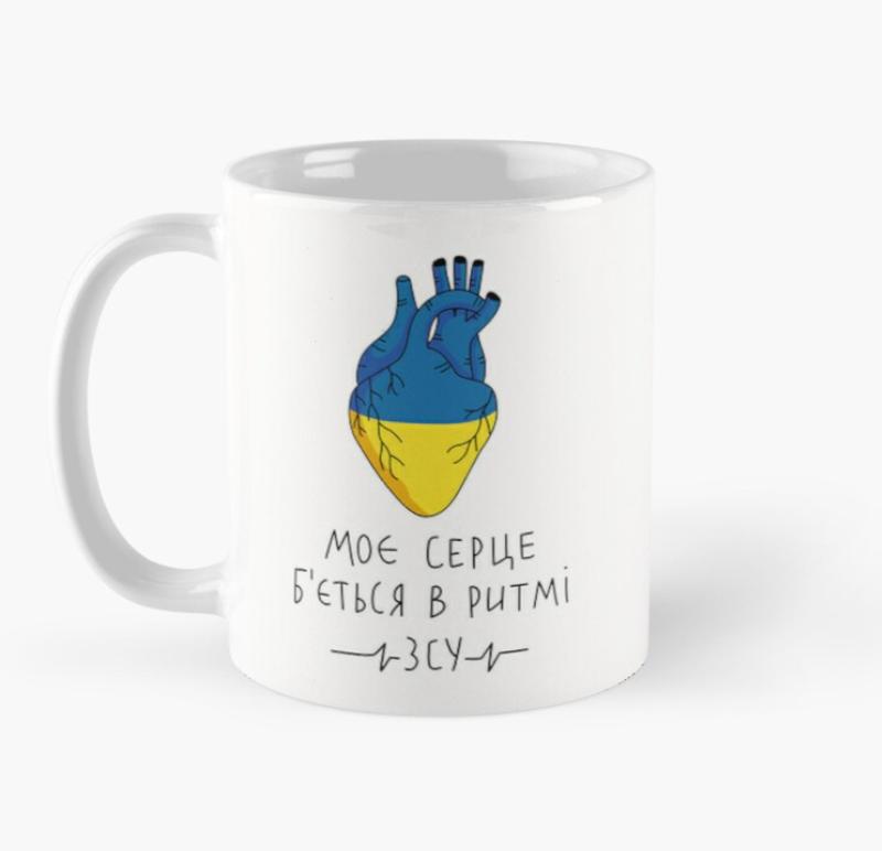 Чашка керамическая кружка с принтом моє серце б'ється в ритмі зсу україна серце белая 330...