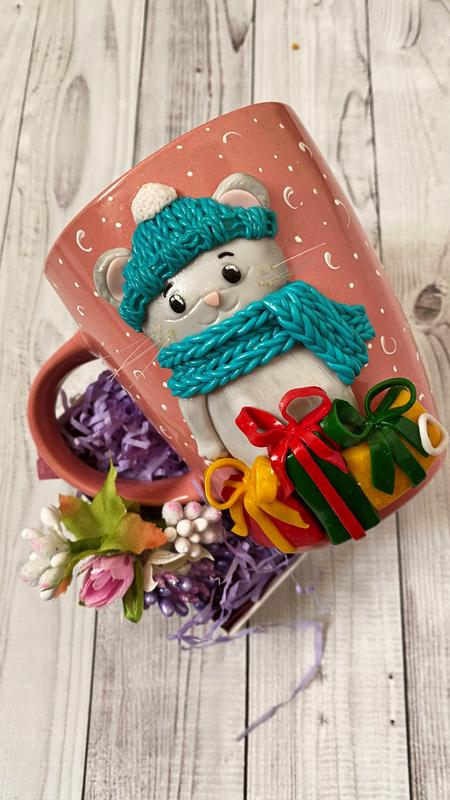 Чашка с декором из полимерной глины. Чашка керамическая 350 мл, можно пить теплые и холодные напитки