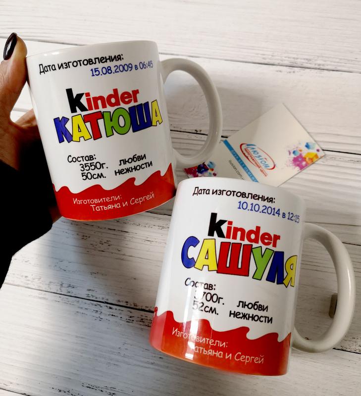Усі дітки полюбляють Kinder. А Чашка Kinder порадує будь-якого малюка своїм яскравим дизайном та високою якістю друку. На кружку можна вписати і'мя дитини, його вагу, зріст та дату народження. Матеріал : кераміка Об'єм: 330 мл Тільки якісна продукція!