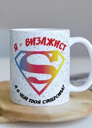 Оригинальная чашка для визажиста с надписью "я - визажист, а какая у тебя суперсила"