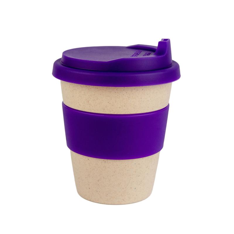 Эко чашка бежевая с силиконовым держателем и силиконовой крышкой фиолетового цвета. Преимущества эко чашки Эко чашки становятся одним из самых популярных товаров, благодаря множеству преимуществ: - Стильный внешний вид - Большой выбор расцветок на любой вкус - Отсутствие предпосылок для аллергии - Небольшой вес - Длительный срок эксплуатации - Подлежит вторичной переработке Состав эко чашки - Измельченный бамбук - Полипропилен Состав держателя и крышки - Гипоалергенный силикон Чашка сделана из предварительно измельченного бамбука и полипропилена, которые формируются при высокой температуре. Особенности чашек из бамбука В отличие от стеклянной посуды, чашки из бамбука более устойчивы к внешним повреждениям, например, ударам, а также к повышенной температуре жидкости. У такого изделия имеются держатель и крышка из силикона. Благодаря держателю, горячий чай или кофе не обжигает руки, а крышка удобно и плотно надевается, не рвется и не ломается, предотвращает протекание. Внутри кружки жидкость сохраняет свою температуру около получаса. Вне зависимости от типа и свойств напитка, посуда не дает никакого привкуса. Эко чашку можно использовать для подогрева содержимого в микроволновке.
