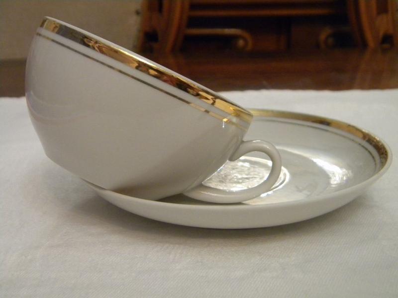 Чайная Двойка Фарфор СССР КФ Чудово 1960 годов Без сколов и трещин Блюдце - диаметр 14 см Чашка - высота 5 см диаметр верха чашки 9.5 см.
