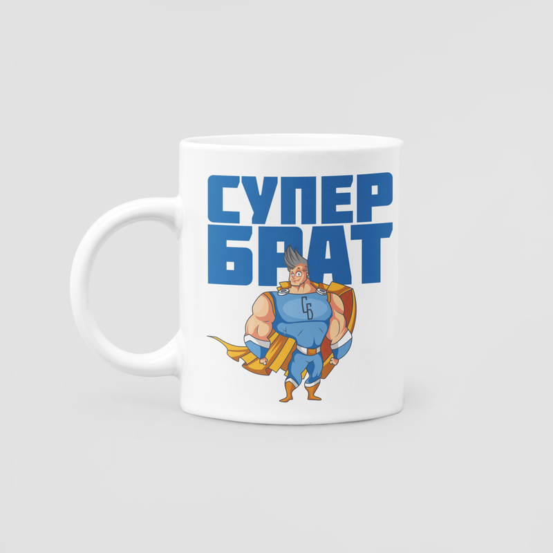 Белая чашка (кружка) с оригинальным принтом "супер брат" push it