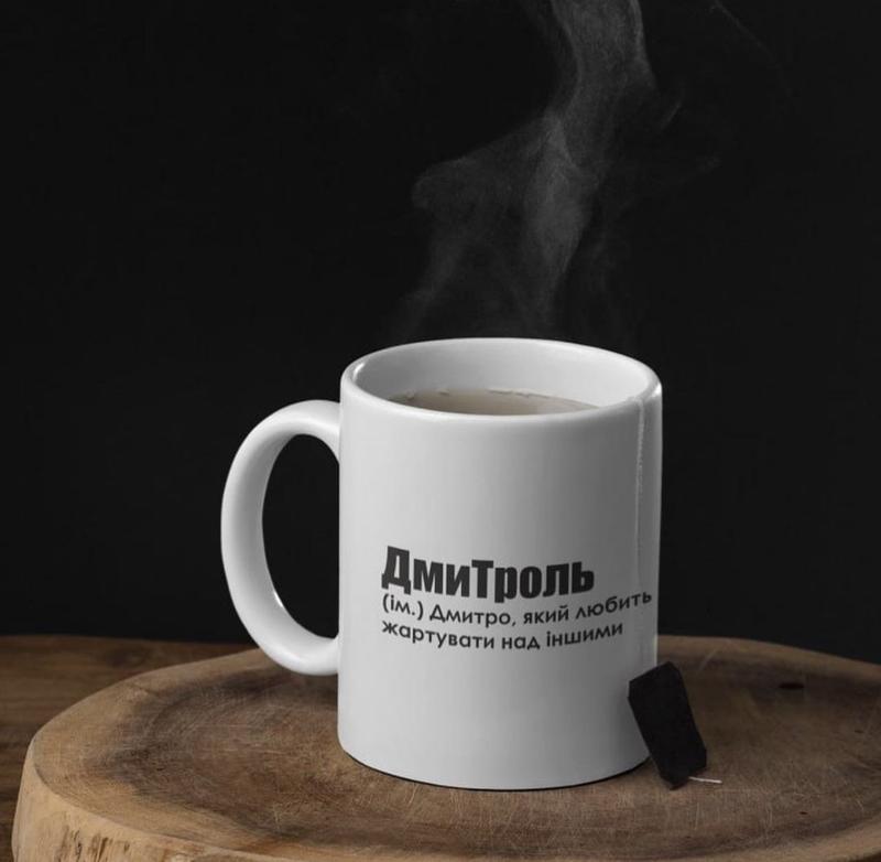 Чашка керамічна з принтом - "дмитроль" дмитро, який любить жартувати над іншими