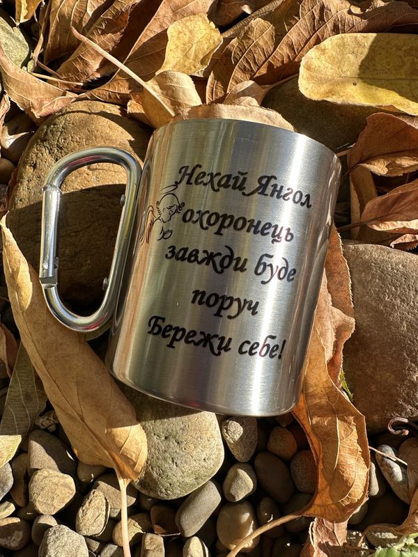 Металлическая чашка с карабином⛓️ ☕️Обʼєм: 300мл. 💸Цена: 380 грн (стандартная упаковка) 💸Цена: 405 грн (подарочная упаковка🎁) 🇺🇦 Собственное производство 🇺🇦 🖨️Возможна печать с вашими фото и текстом (разработка макета бесплатна) 🚀Мгновенное исполнение и быстрая отправка 🚚Открытка Новой Поштой/Укр-бытой Для заказа пишите нам 💌