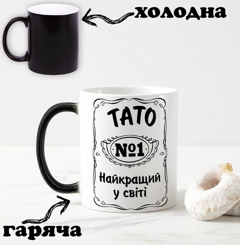 Черная чашка хамелеон с надписью "папа №1 самый лучший в мире" 330 мл
