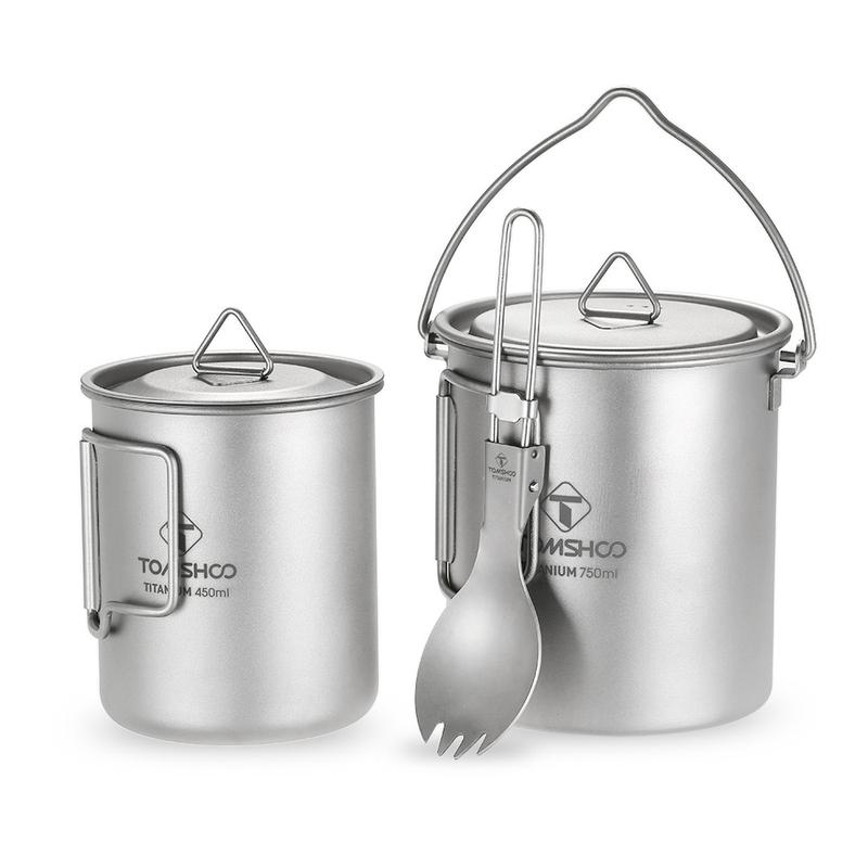Чашка 450мл с котелком 750мл из титана tomshoo + ложка