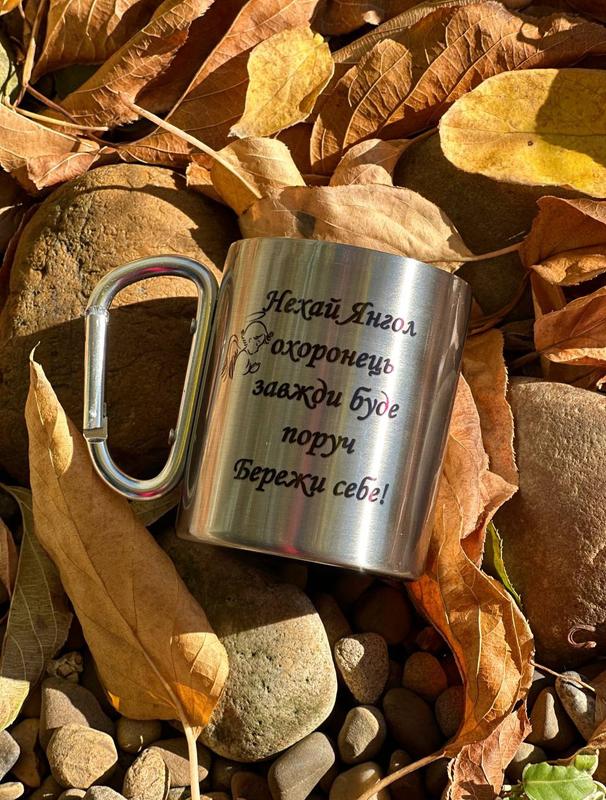 Чашка горнятка металлическая с карабином на подарок индивидуальная печать